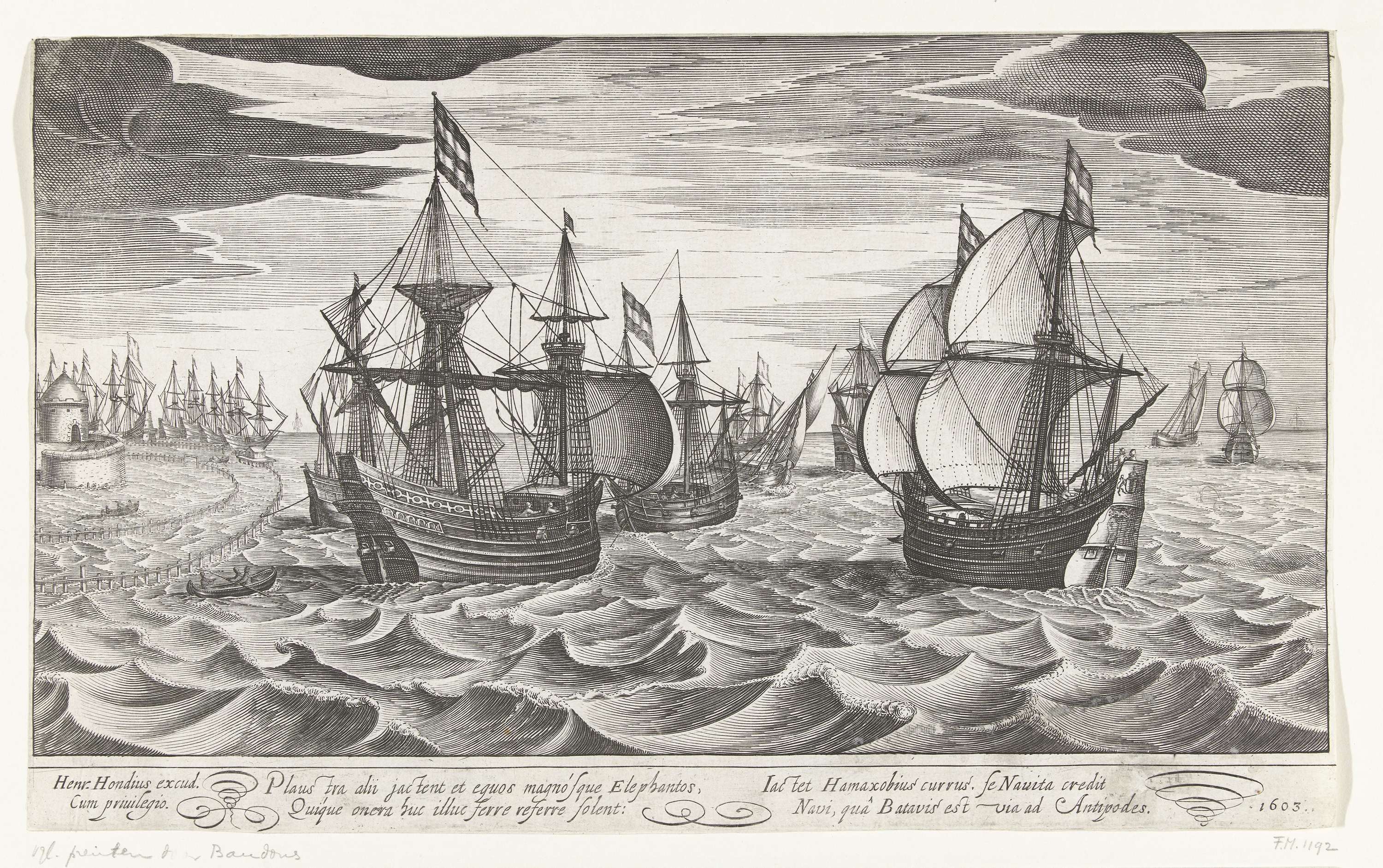 Vloot van negen schepen vertrekkend van Amsterdam na...