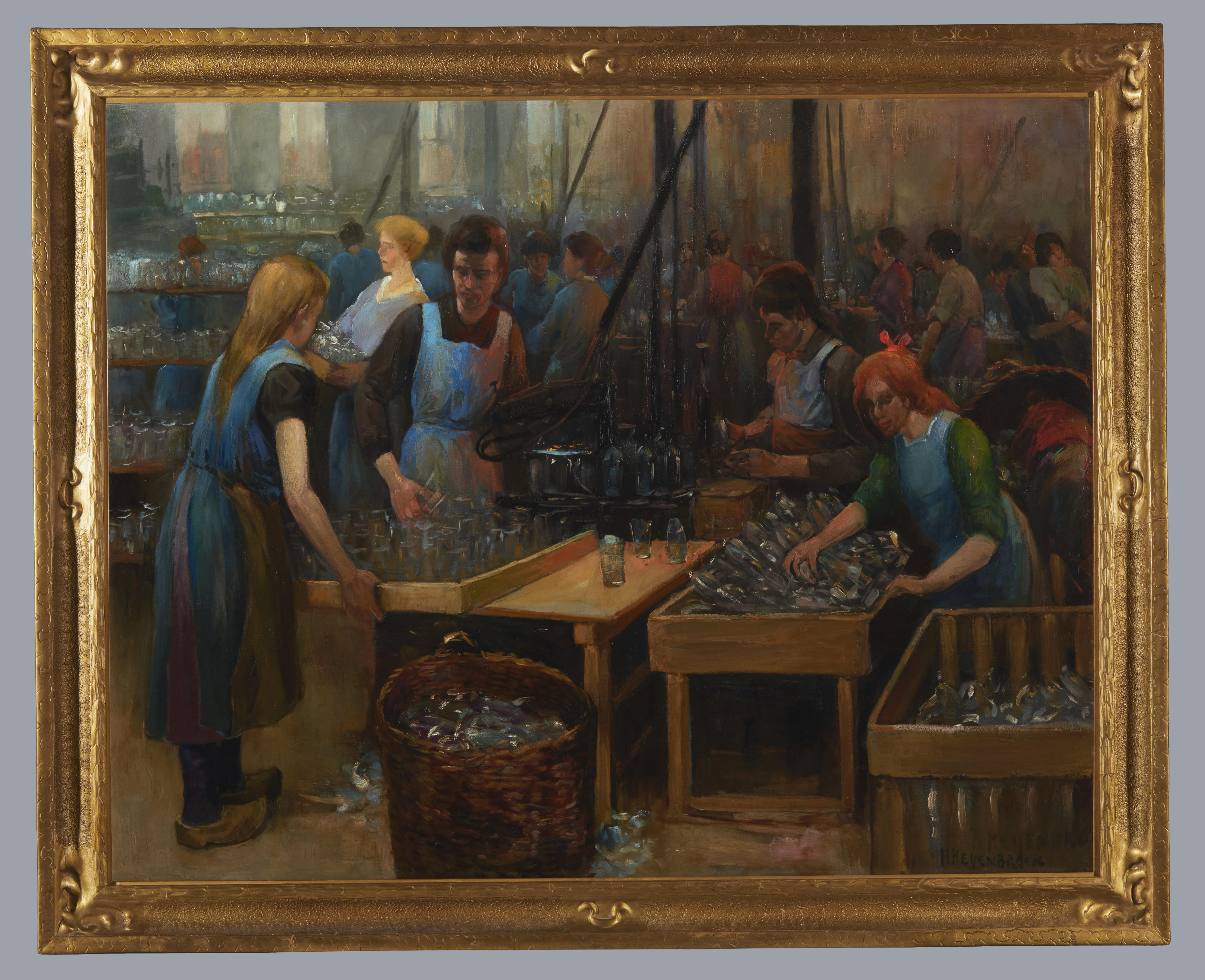 Interieur van afspringkamer glasfabriek in Leerdam, ...