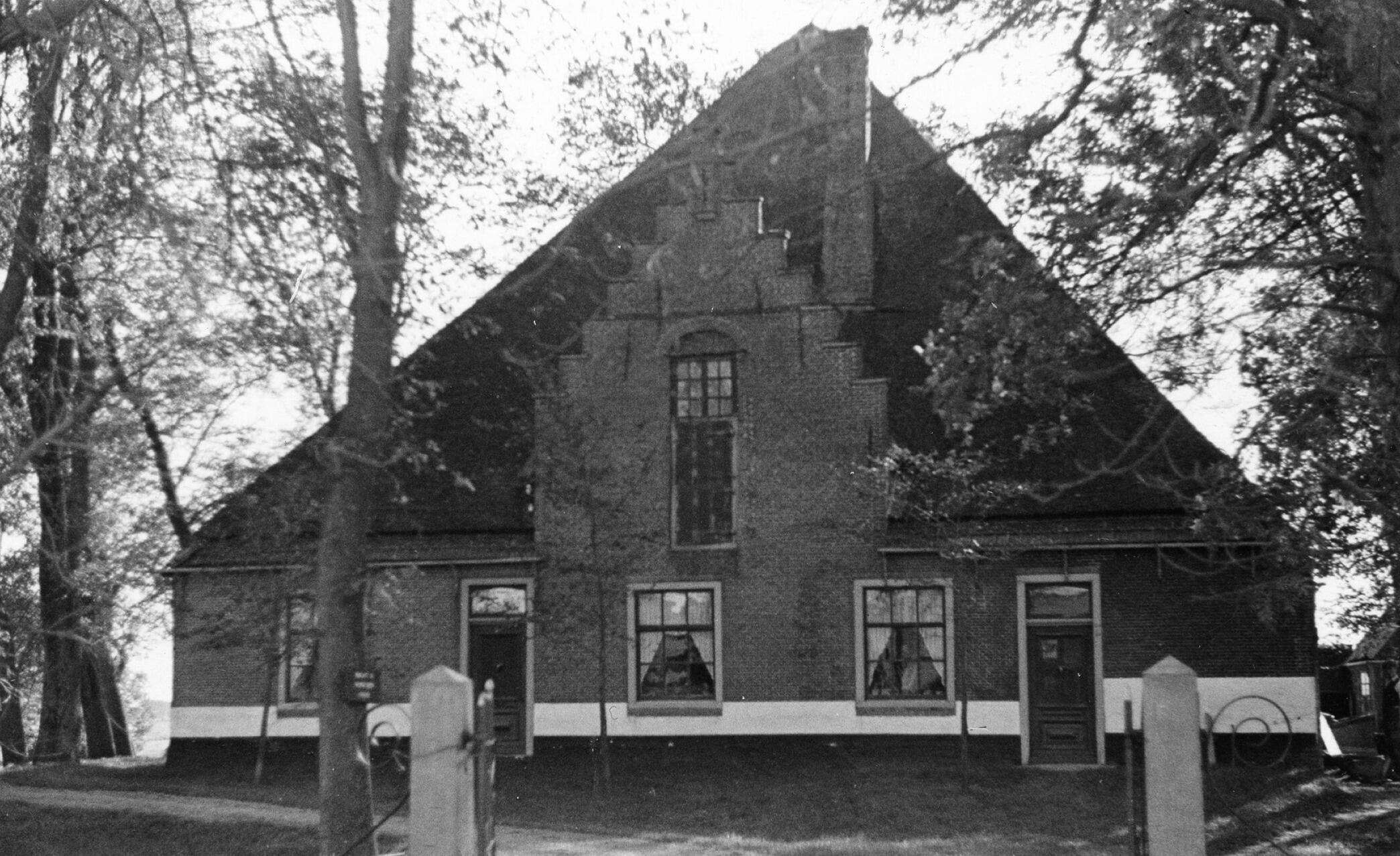 Kerk en school, Schermer, 1936 (zwart-wit foto)