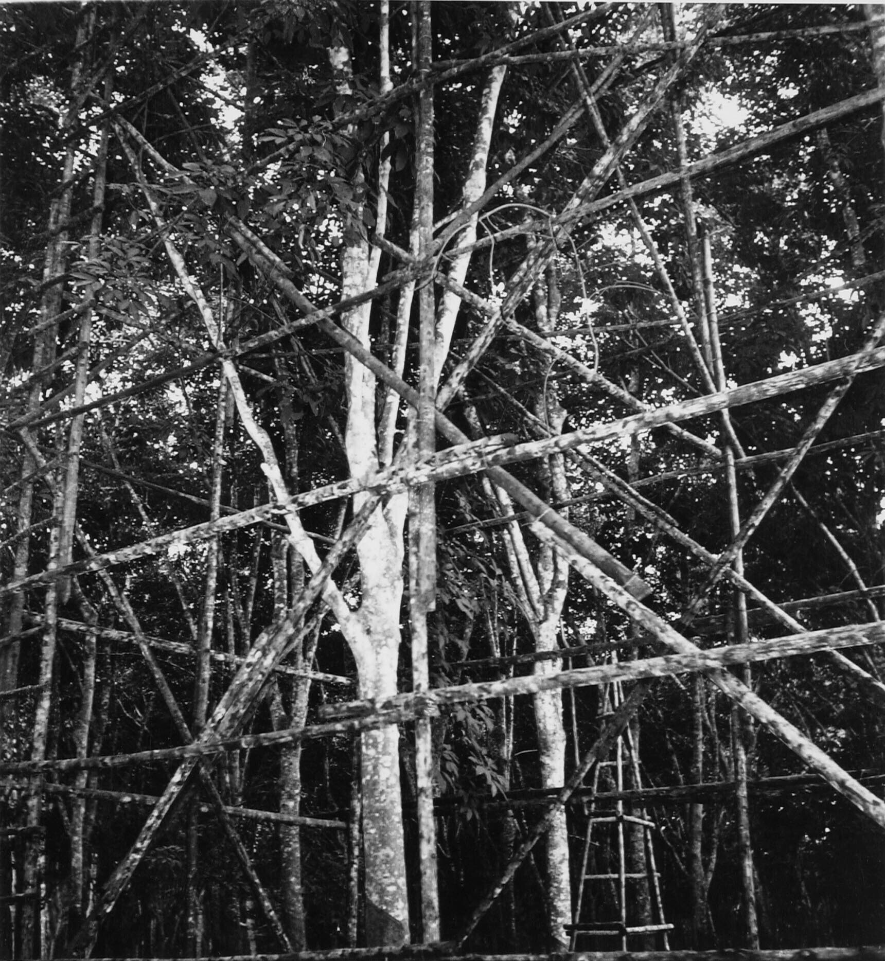 Rubber onderneming Sugei Putih, hier een stellage om...