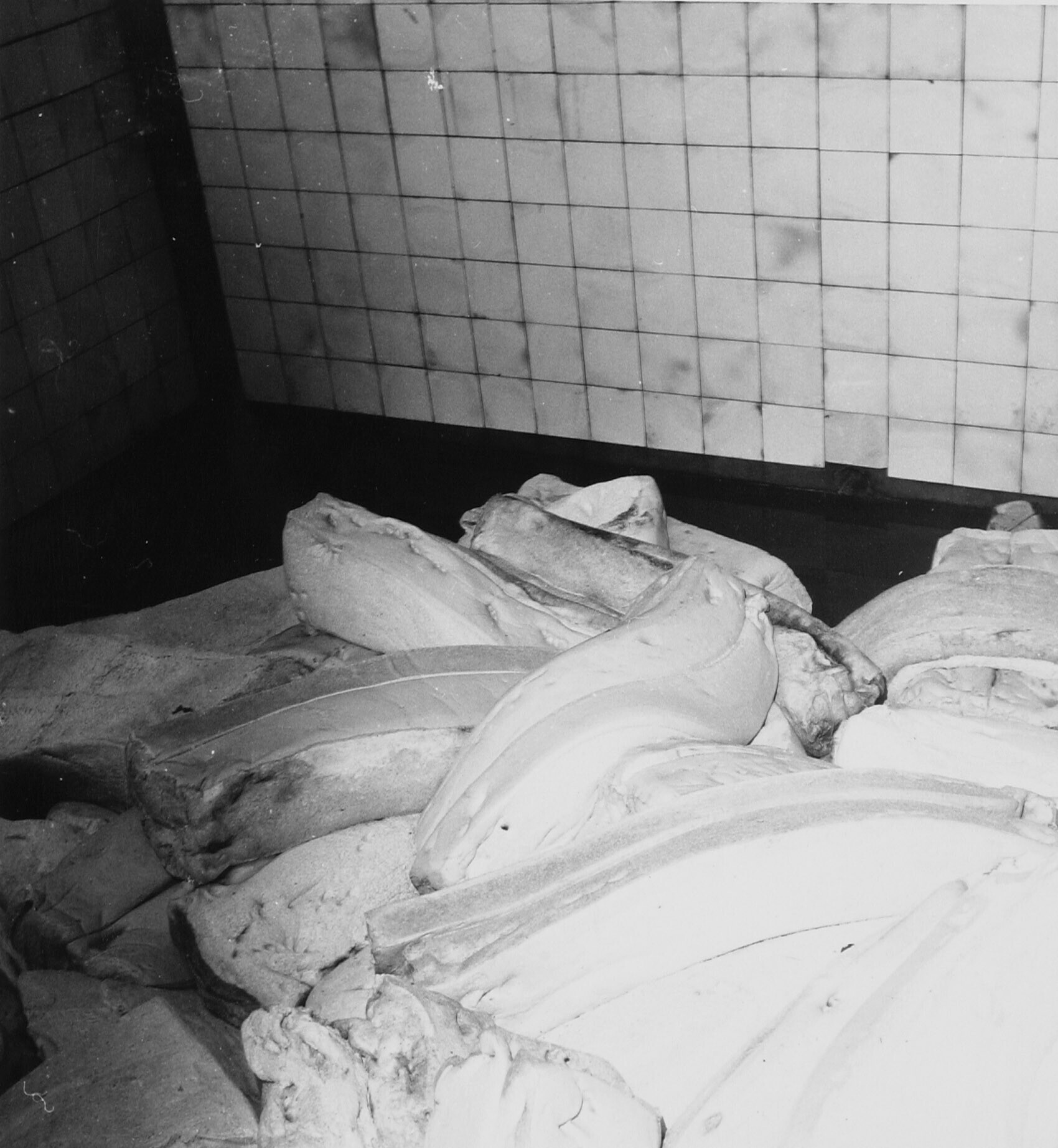 Vuille bevolkings-rubber in wasbakken bij Hapinis- O...