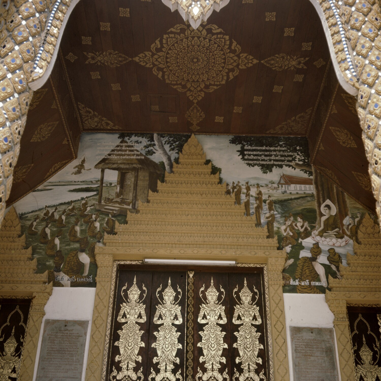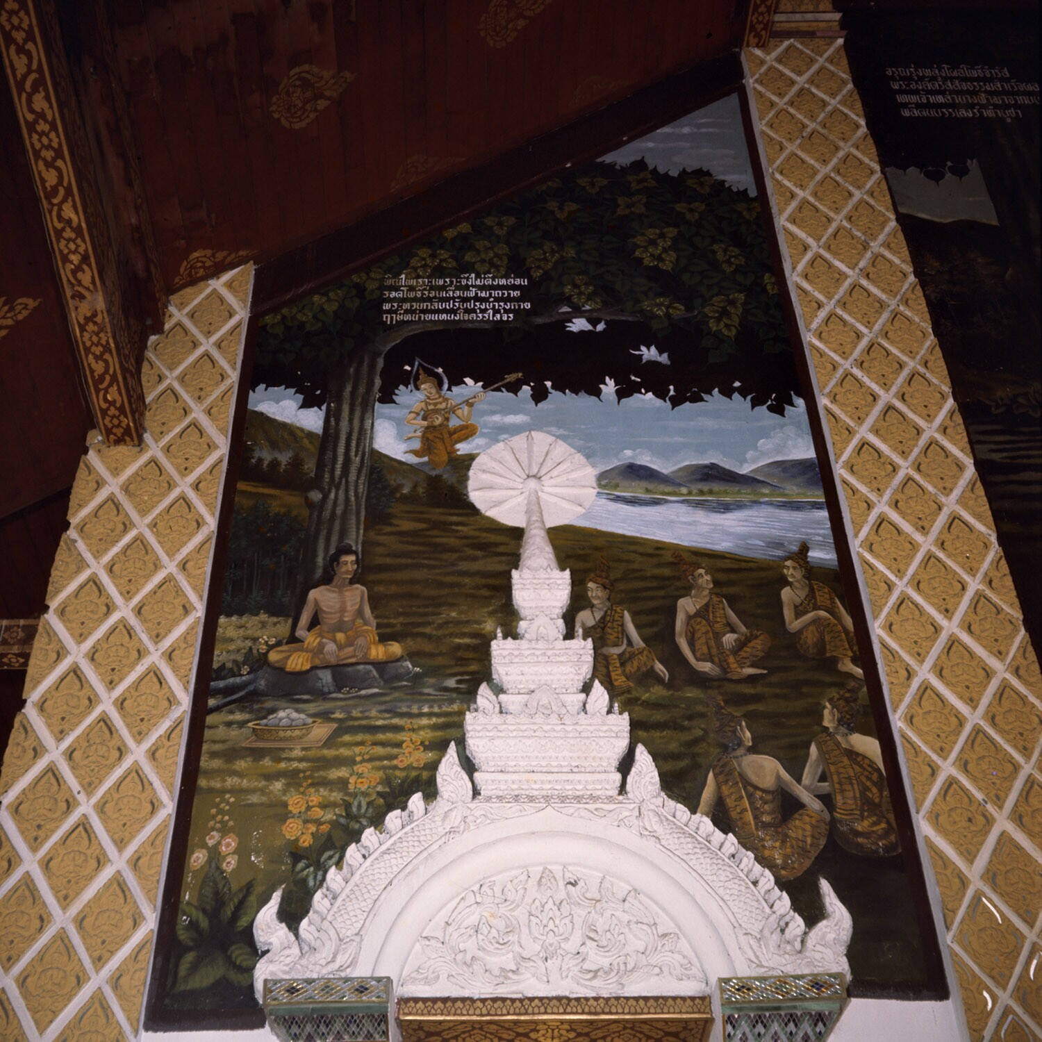 Muurschildering van een Wat in Lampun,voorstellende ...