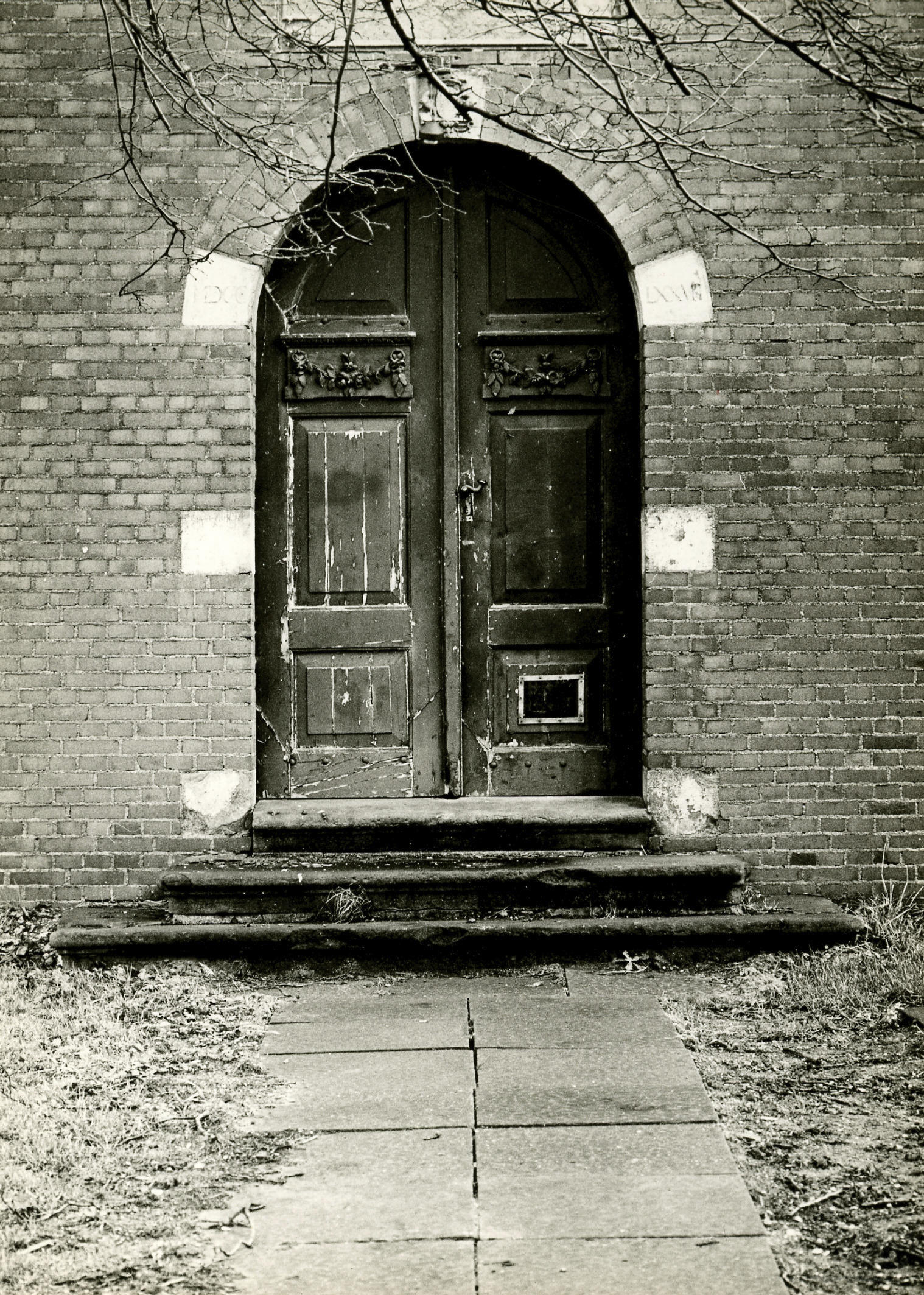 Kerkdeur, Heveskes, 1975 (zwart-wit foto)