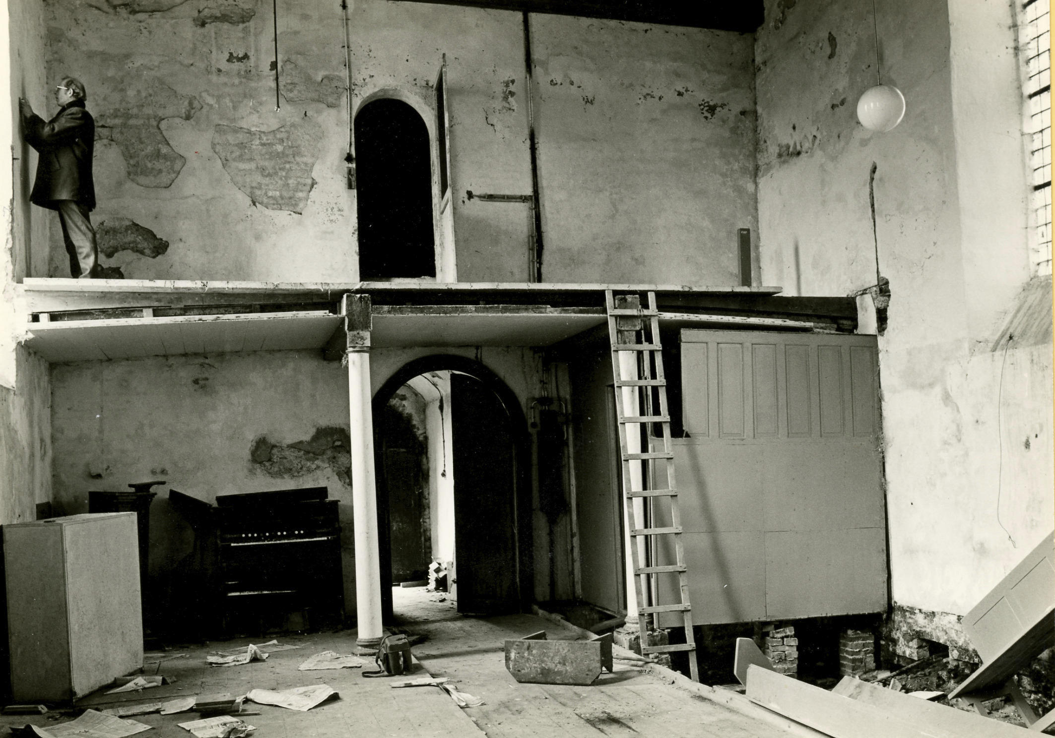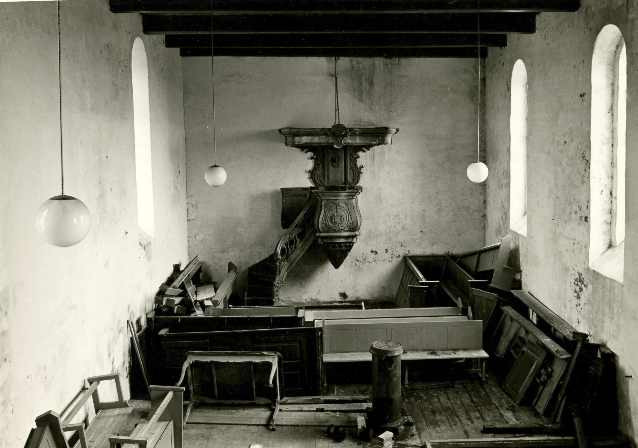 Interieur van de kerk, Heveskes, 1975 (zwart-wit foto)
