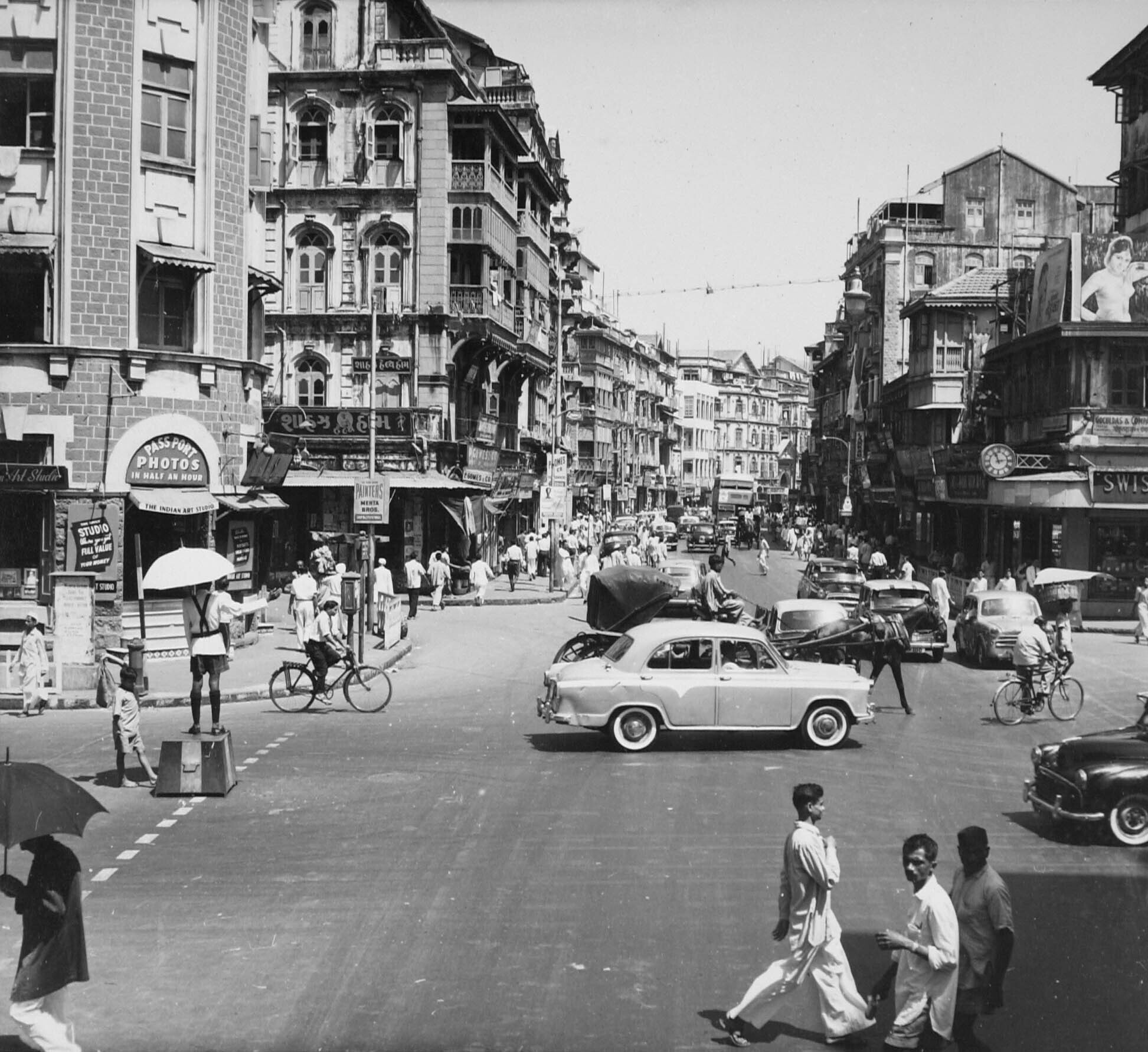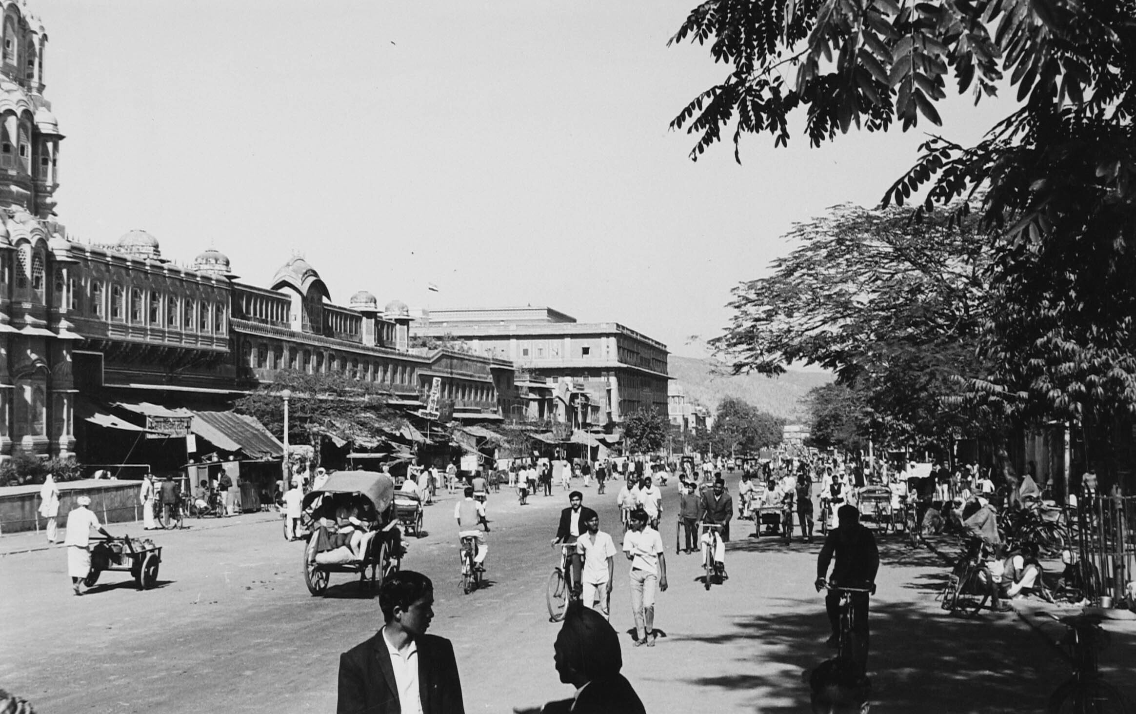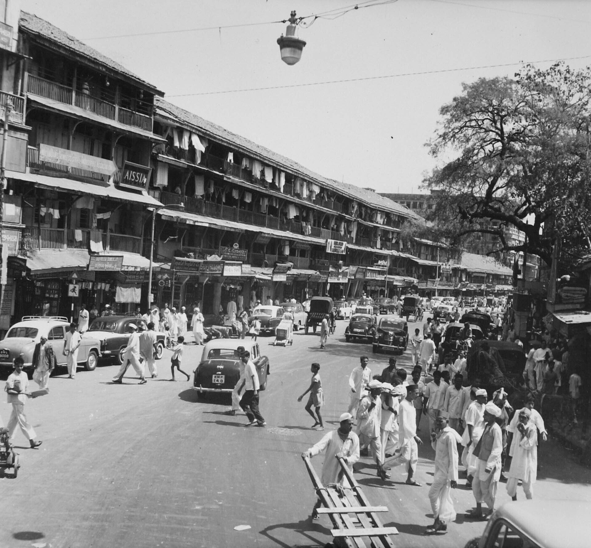 Straatbeeld in Hyderabad met links op de voorgrond e...