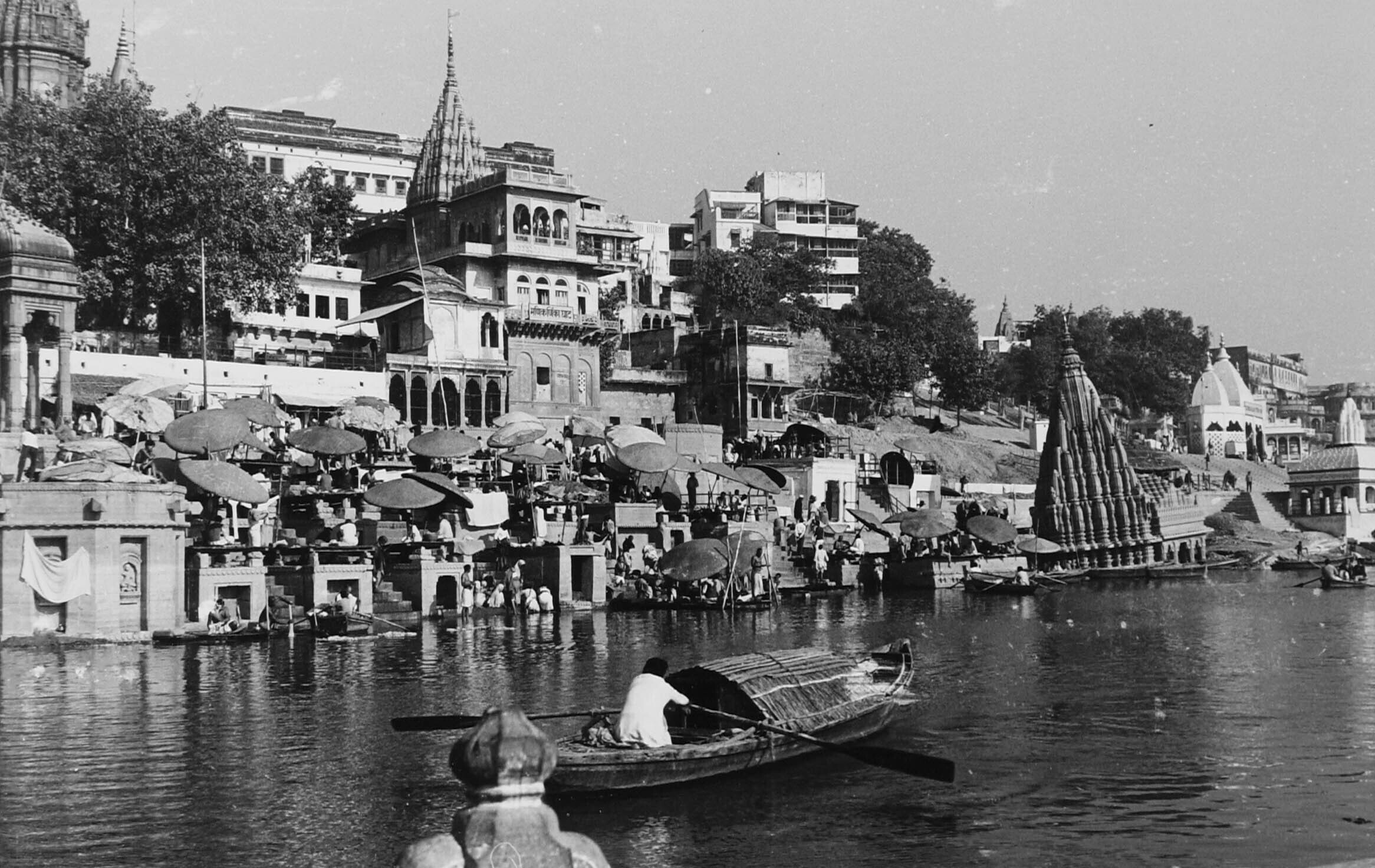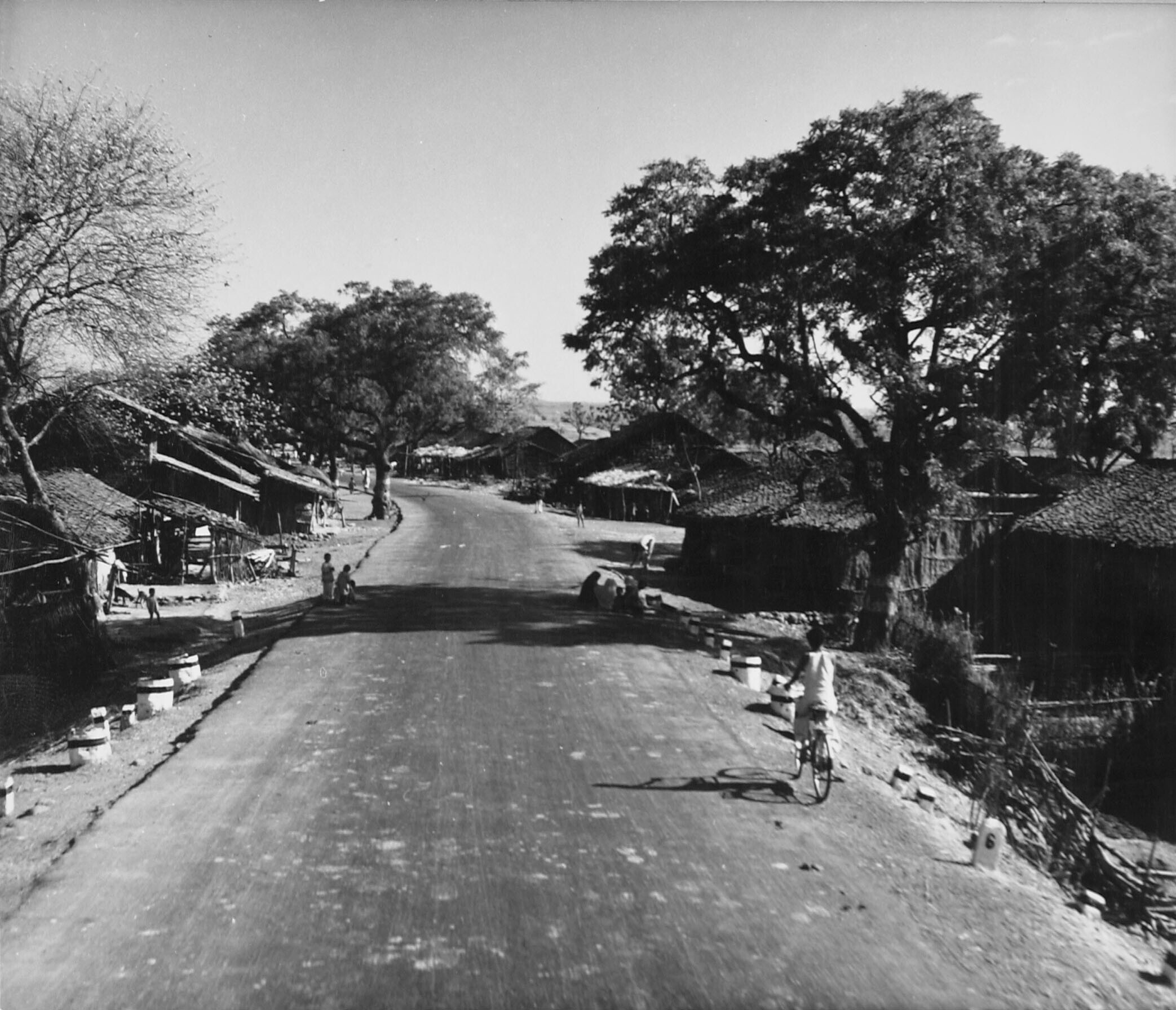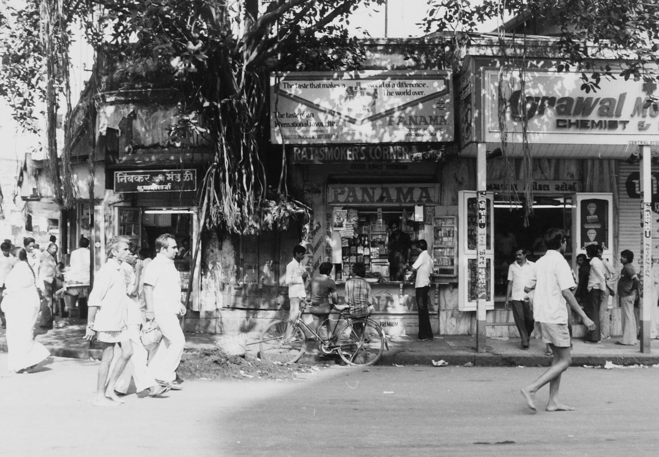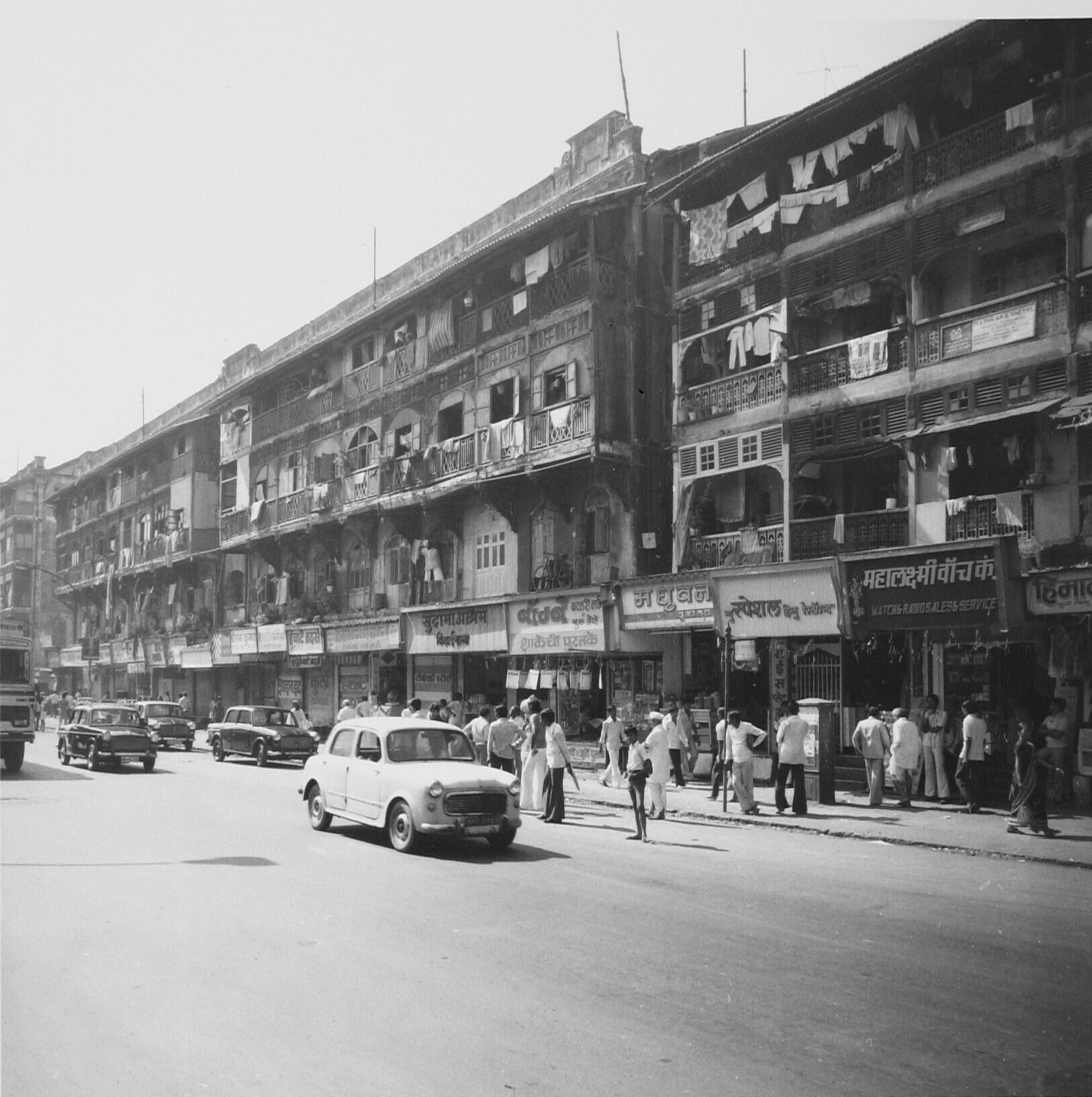 Straatbeeld in Hyderabad met links op de voorgrond e...