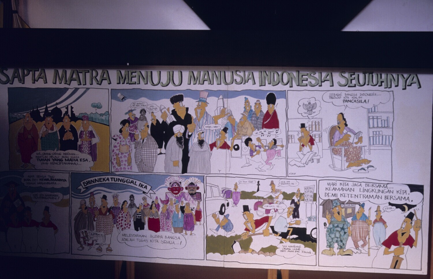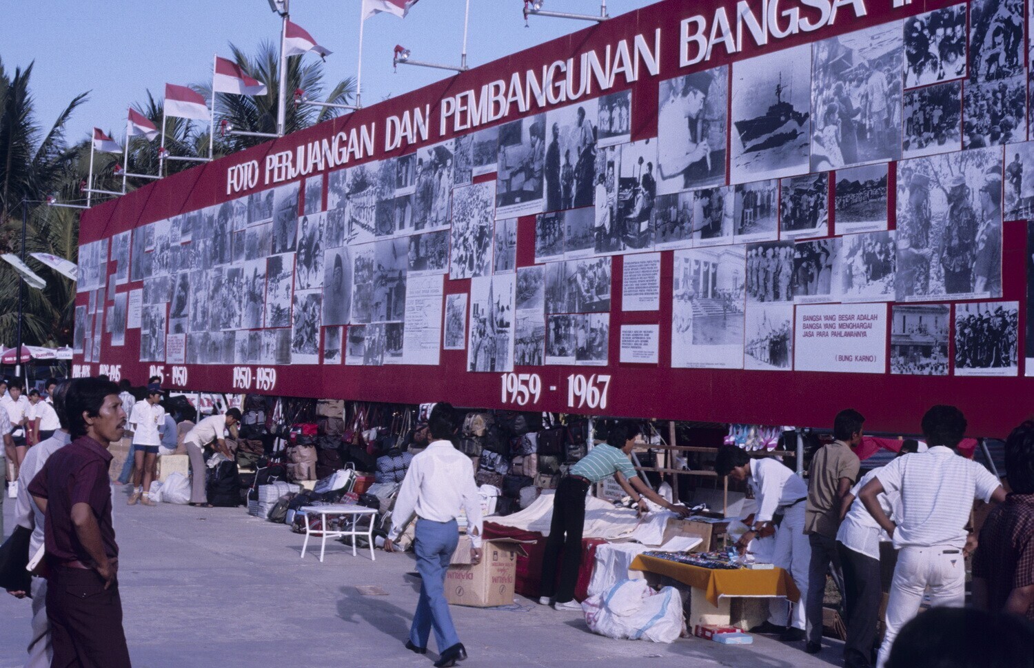 Bord met foto's over de geschiedenis van de Indonesi...