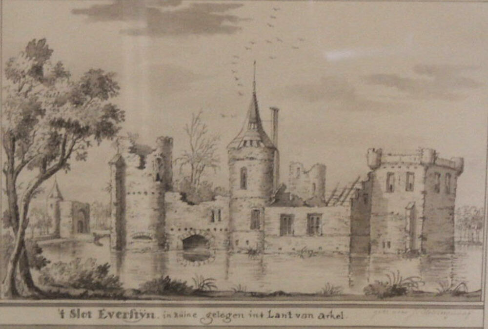 Tekening, voorstellend het slot Everstein in het Lan...