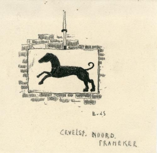 Tekening met potlood van een gevelsteen aan het Noor...