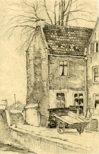 Tekening met potlood van de Froonacker in Franeker d...