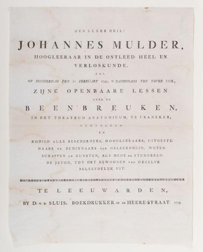 Aankondiging van een openbare les door prof. Johanne...