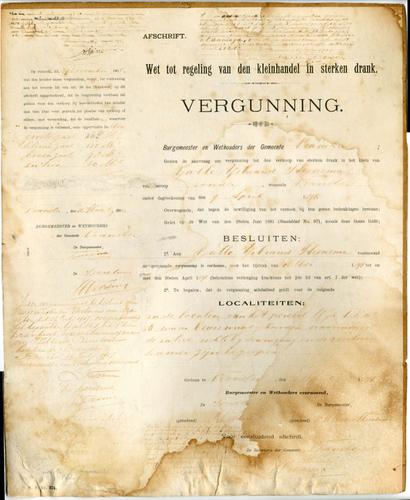 Vergunning voor de verkoop van sterke drank ut 1894