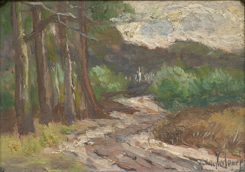 Schilderij met daarop een weg door een bos op de Veluwe