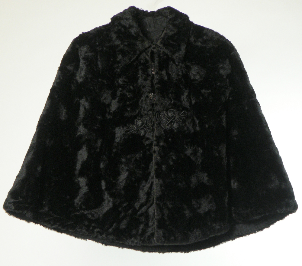 Pelerine van zwart kunstbont, met bijpassende sjaal