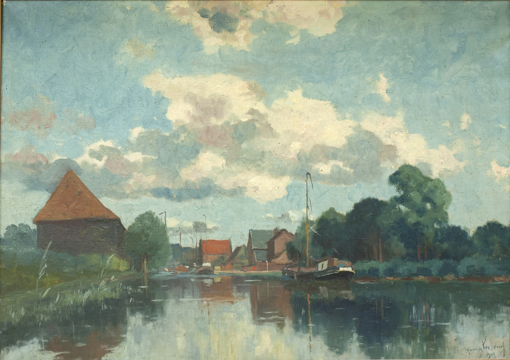 Schilderij met daarop de haven van Nijkerk, 1909