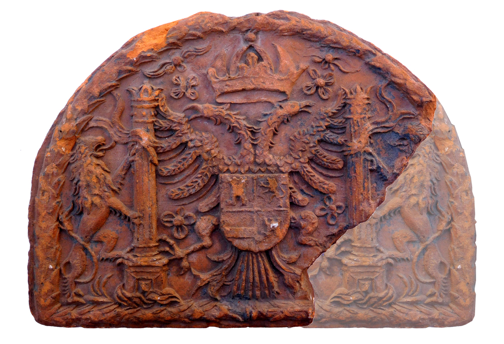 Deksteen met daarop een wapentafereel