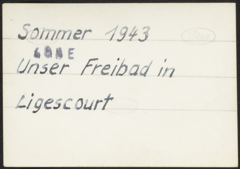 Drie soldaten in/bij een zwembad in de zomer van 194...