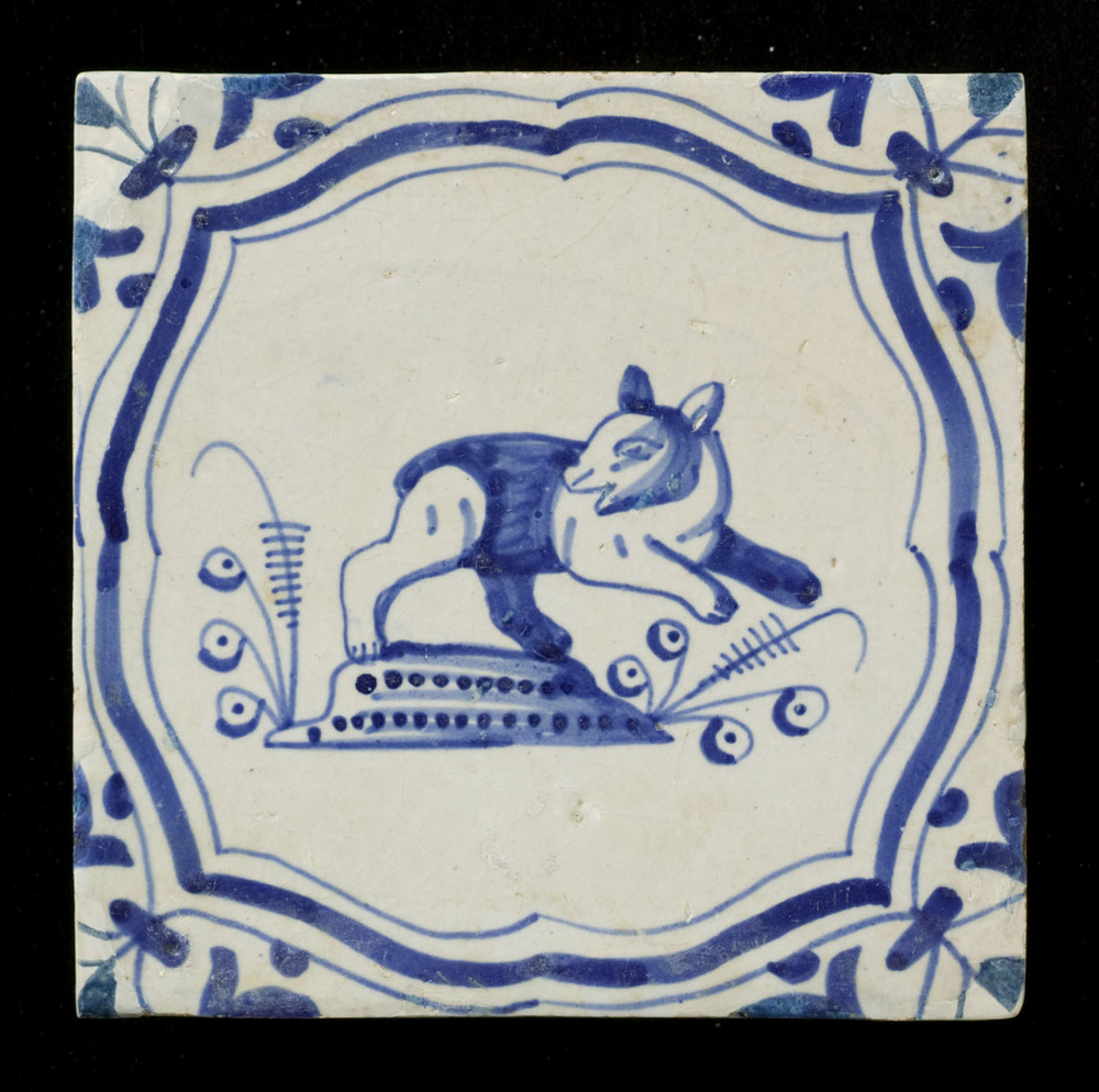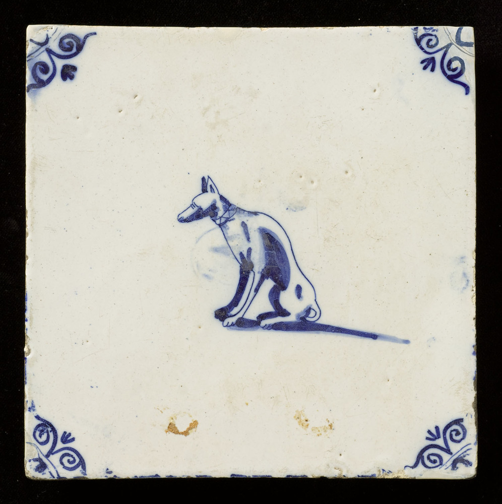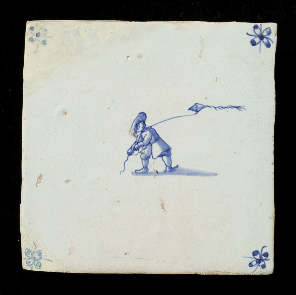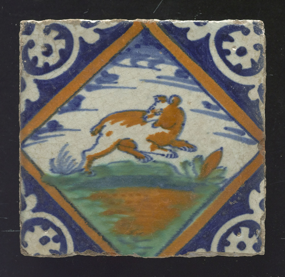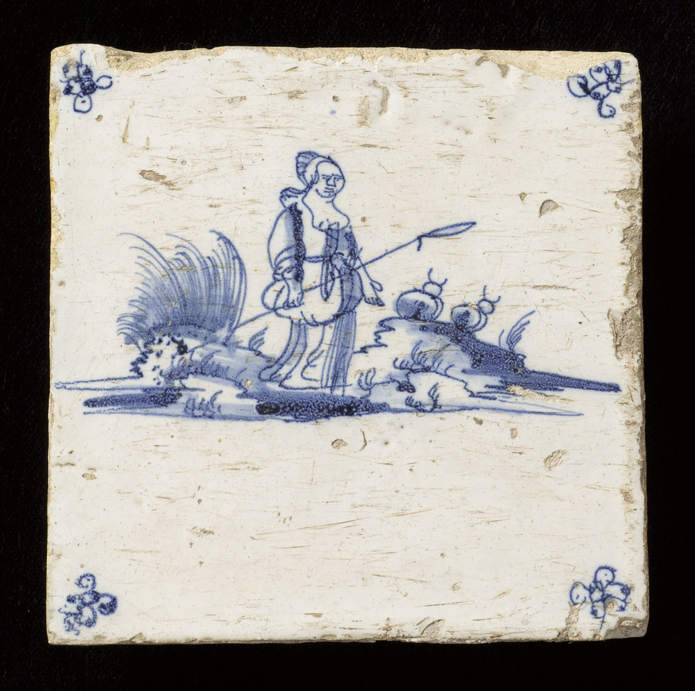tegel van keramiek met tinglazuur, voorstellende: Hu...