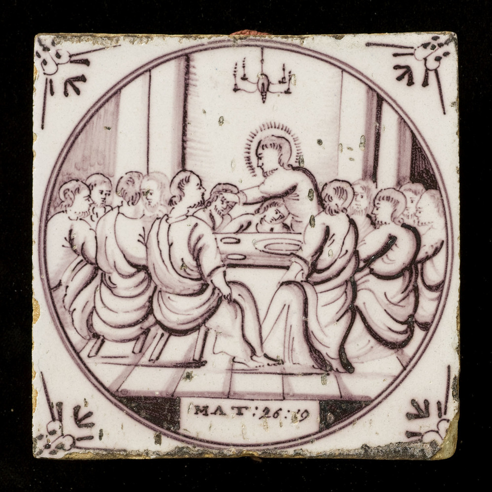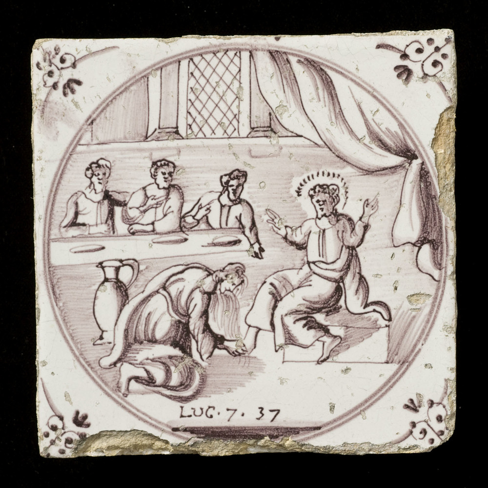 Tegel in tinglazuur, voorstellende luc. 7:37 Jezus d...