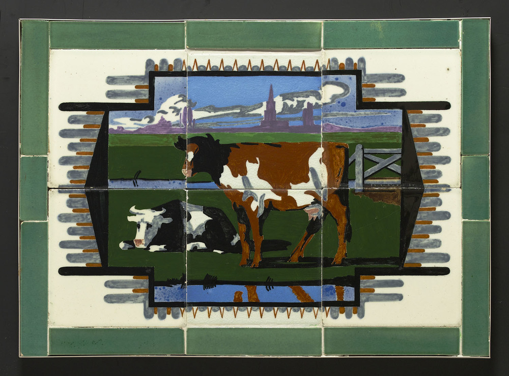 Tegel, gescreend en geschilderd, met voorstelling: M...