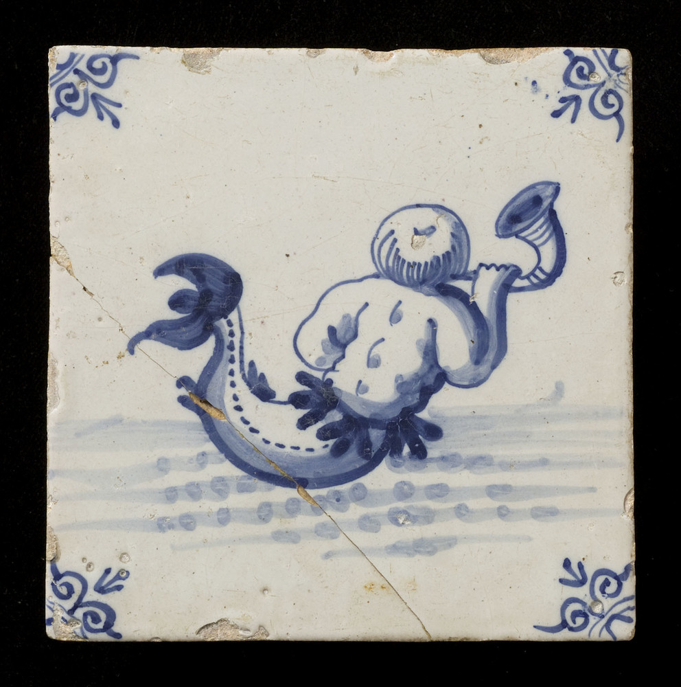 Tegel in tinglazuur, voorstellende triton, ca. 1650-...