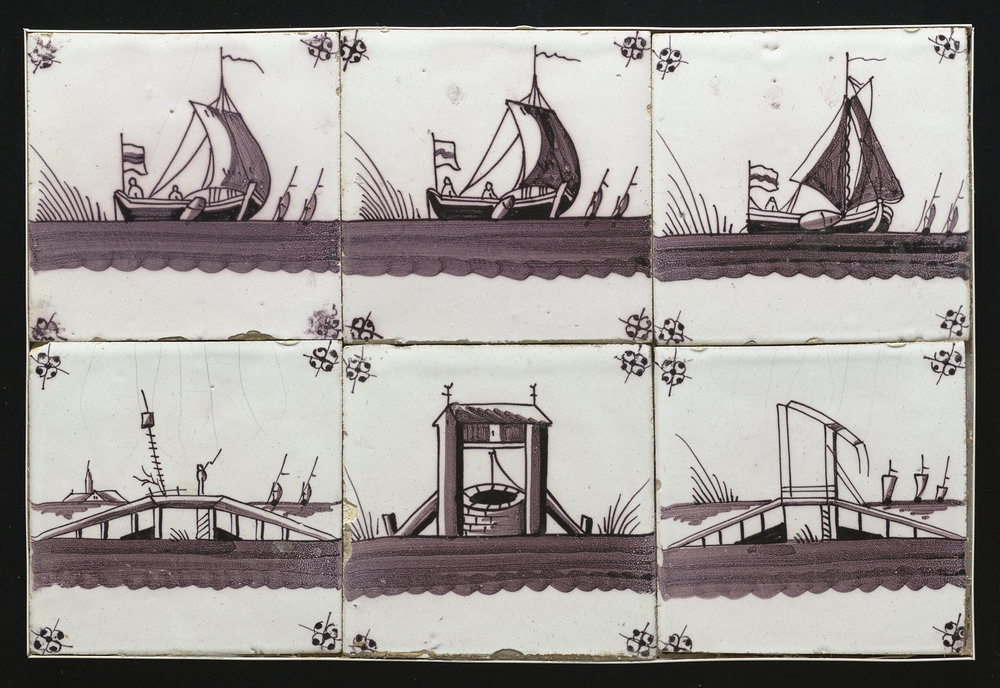 Tegeltableau van keramiek, onderglazuur, voorstellen...