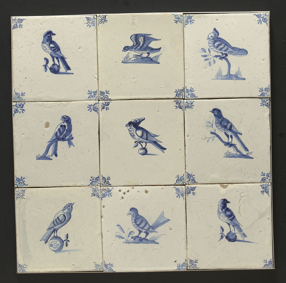 Tegel van keramiek, tinglazuur, voorstellende een bi...