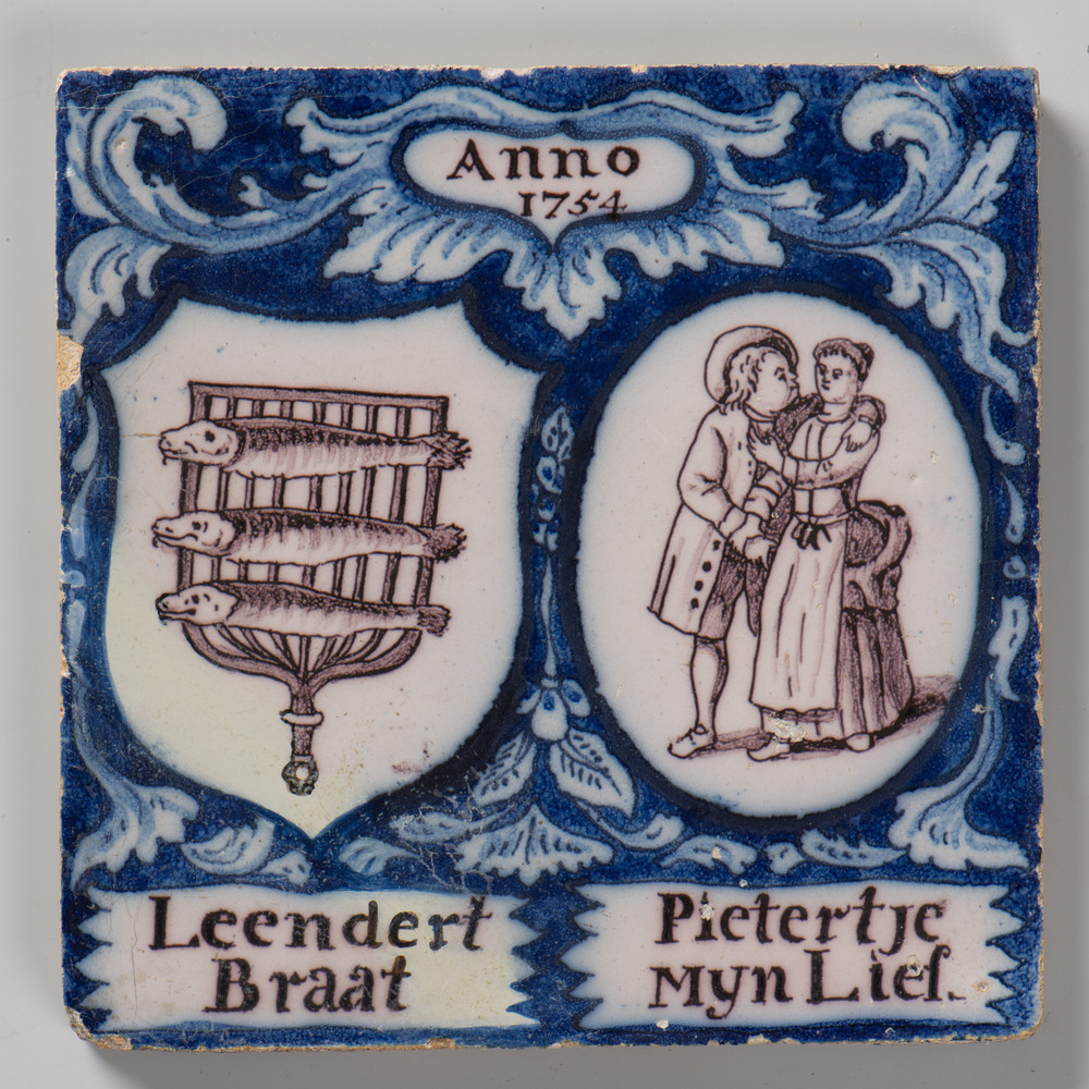 Tegel van aardewerk met tinglazuur, voorstellende he...