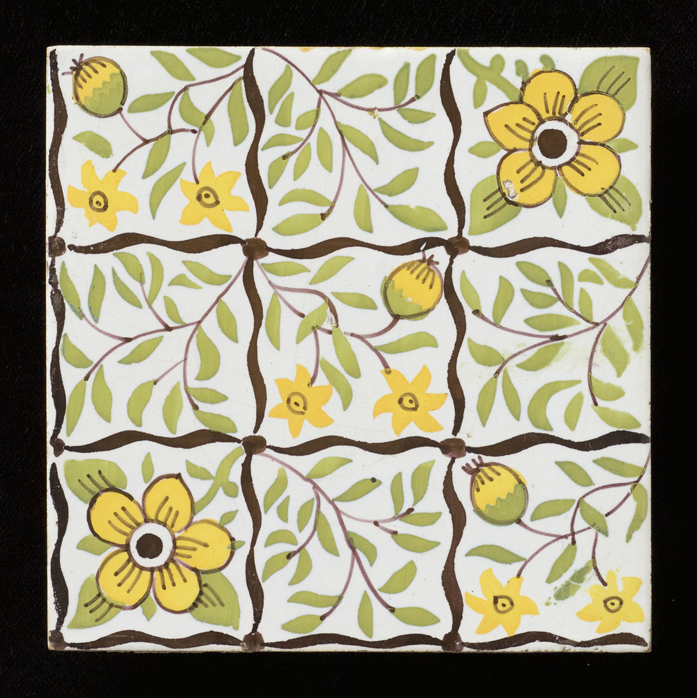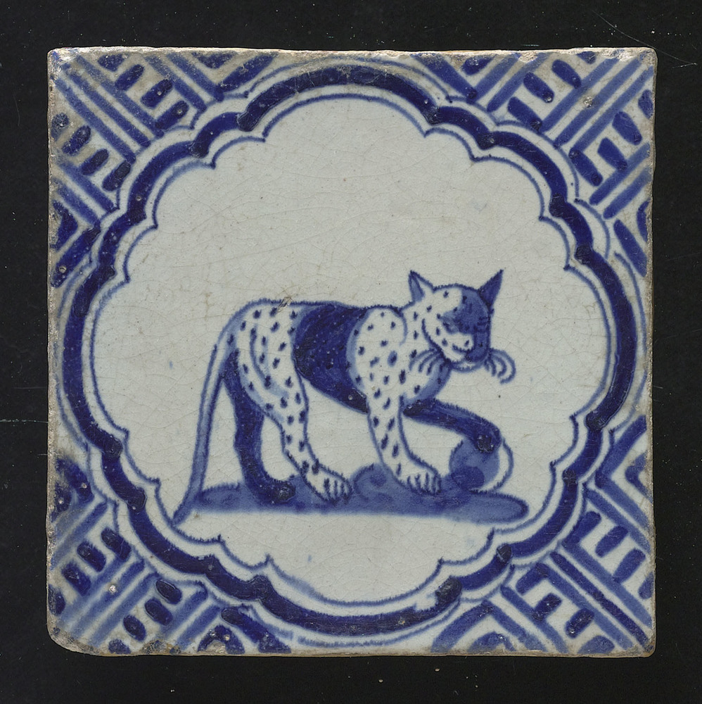 Tegel van keramiek, tinglazuur, voorstellende orname...