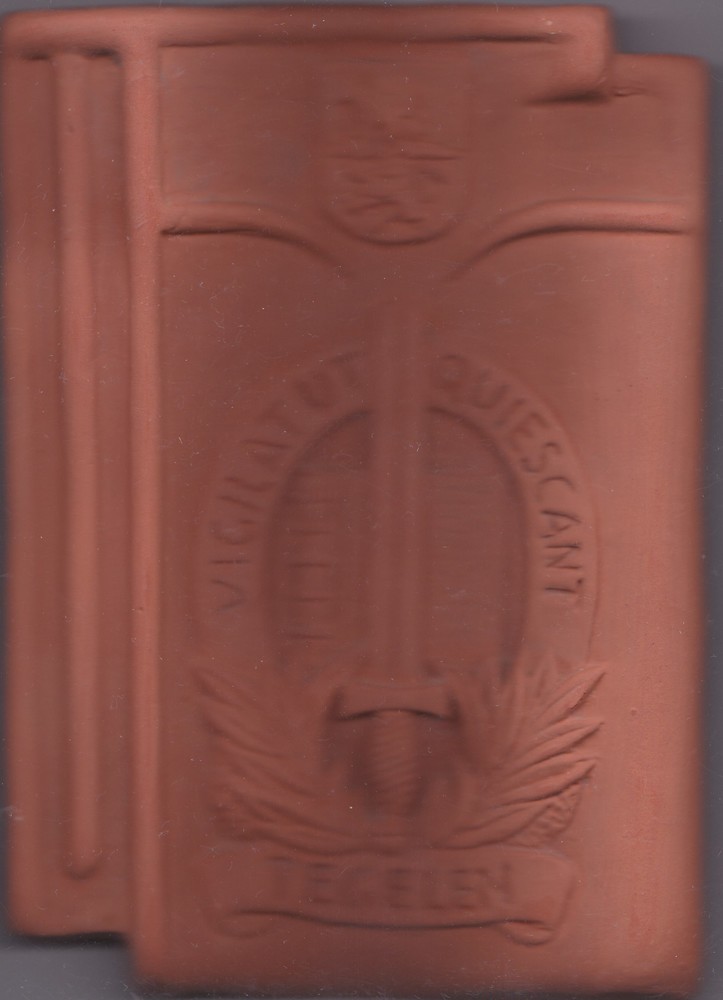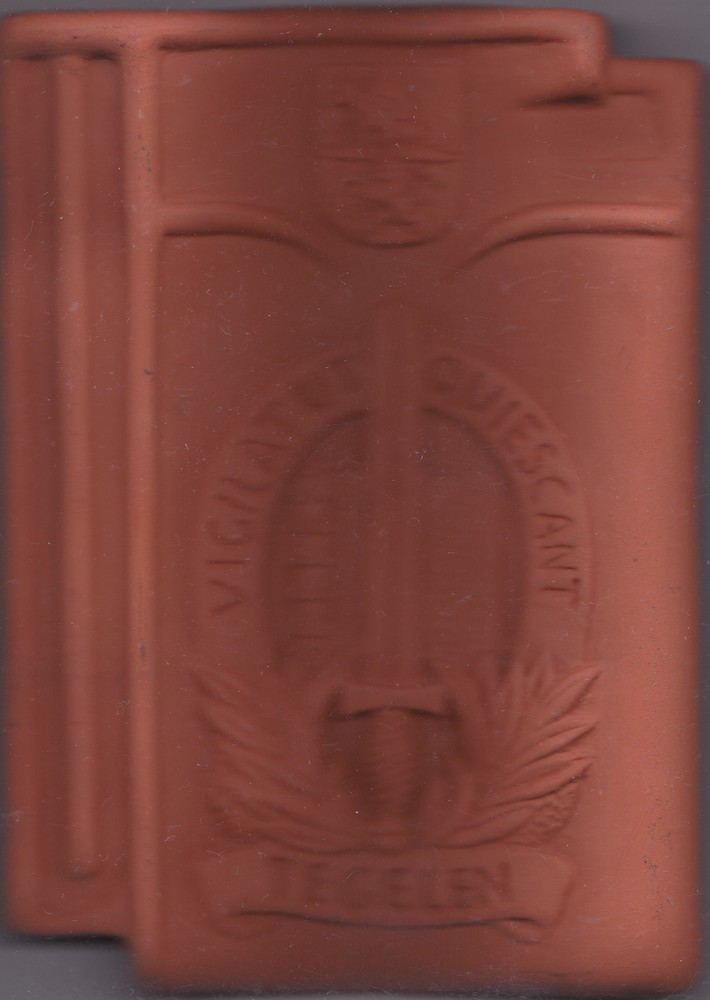 Dakpan in reliëf, met voorstelling: embleem politie ...