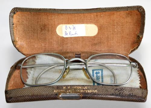 Bril zonder montuur, ronde glazen, koperen veren, 1938