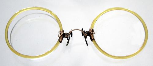 Neusbril Ronde glazen, celluloid. 1880 - 1920. + met...