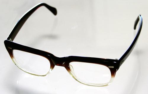 Bril Acetaat, vrij dikke half afgeronde glazen, 1960