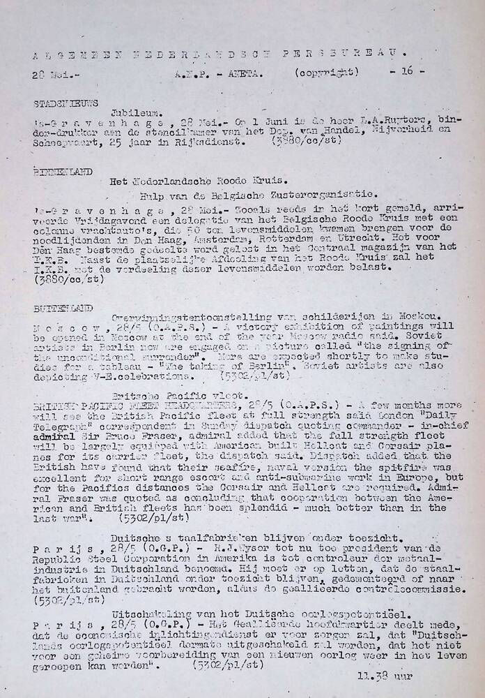 Algemeen Nederlandsch Persbureau, mededelingen, 28 m...