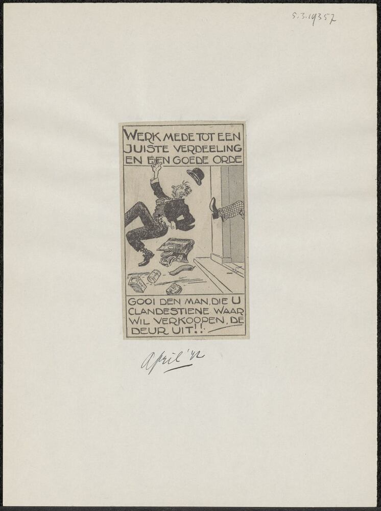 Vel met opgeplakte advertentie: "Werkt mede tot een ...