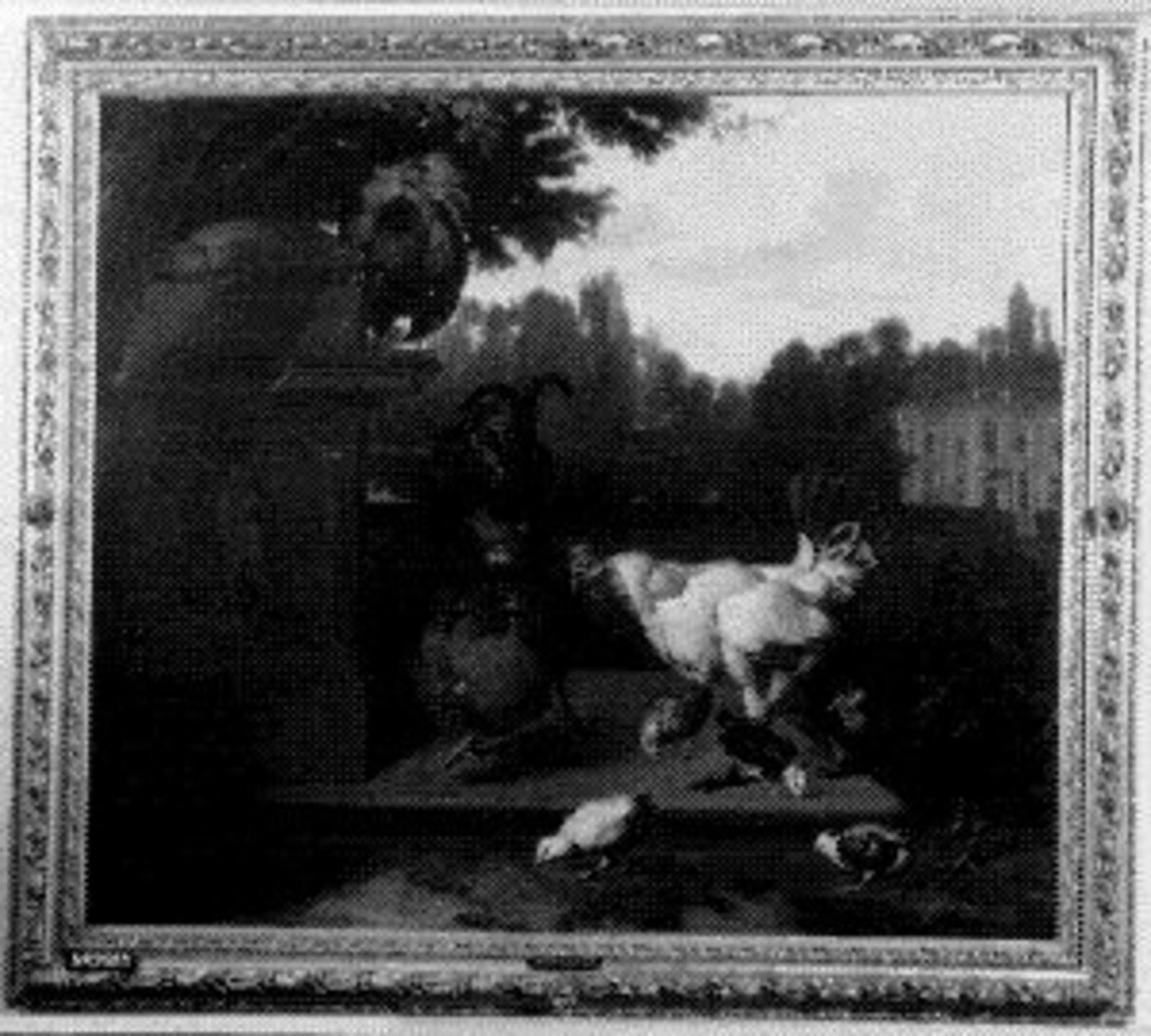 Hoenders in park bij landhuis