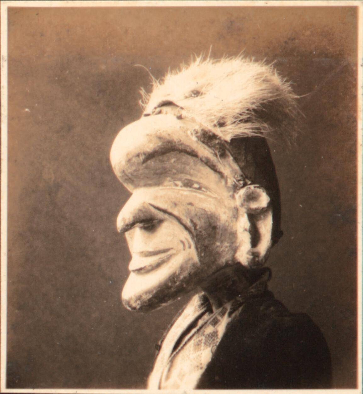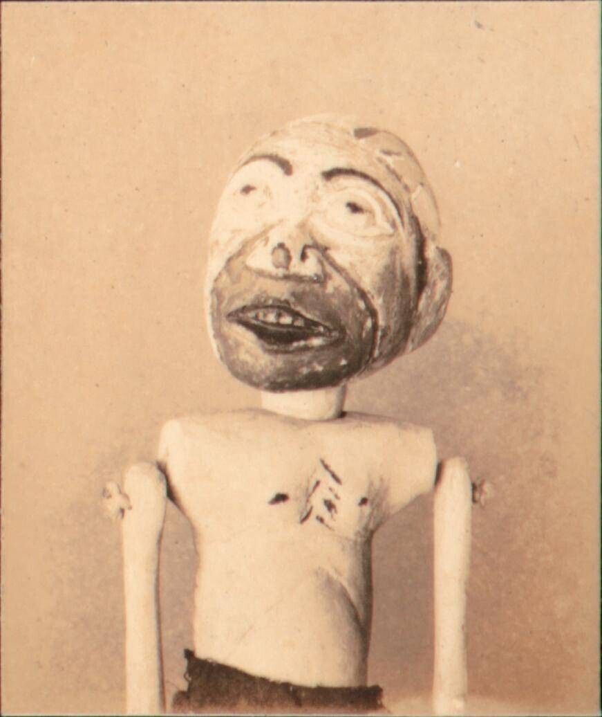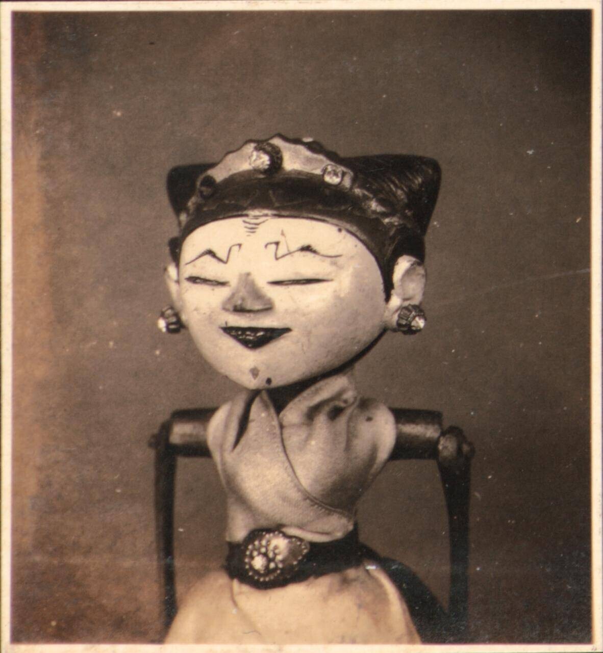 Groepsportret van wajangpoppen die een kaartspel spelen