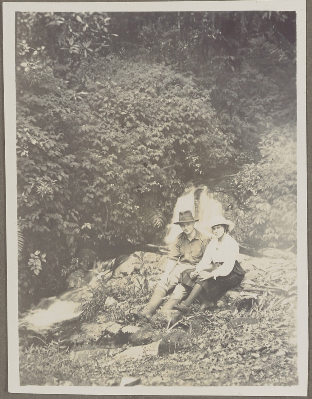 Man en vrouw poseren bij beekje