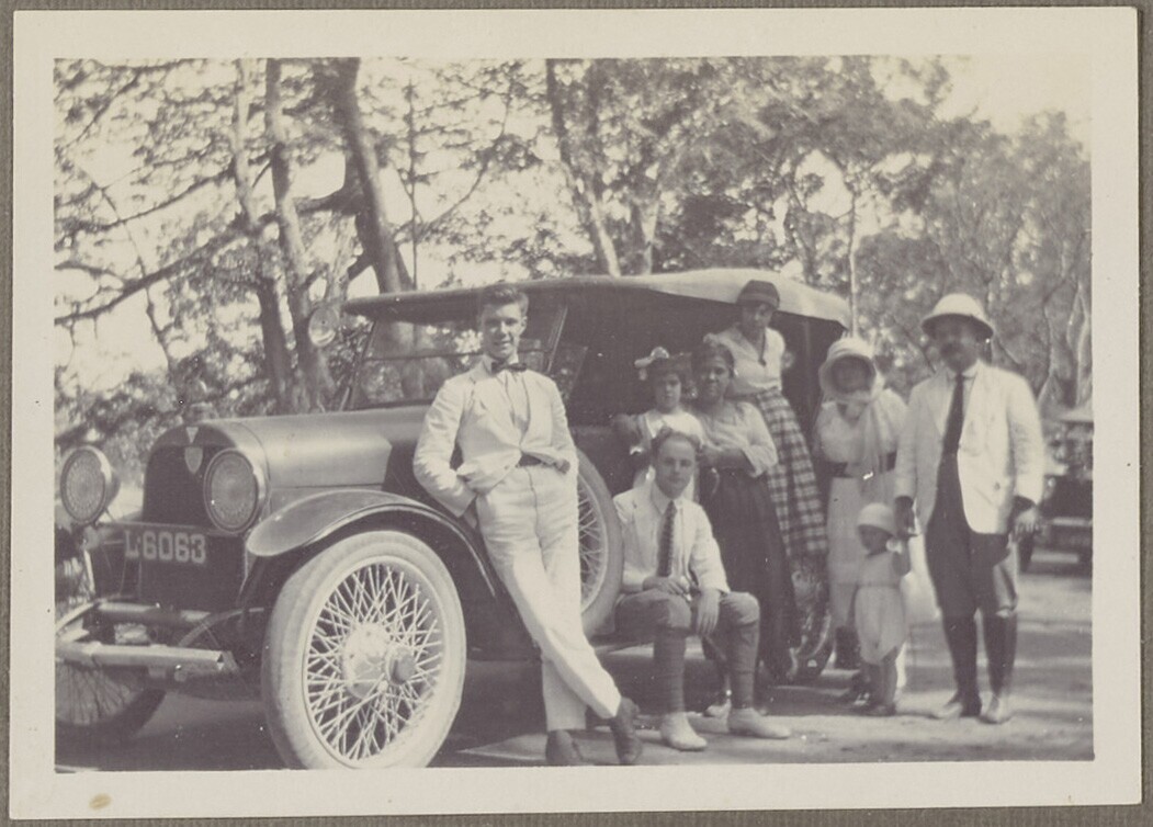 Gezelschap poseert bij auto