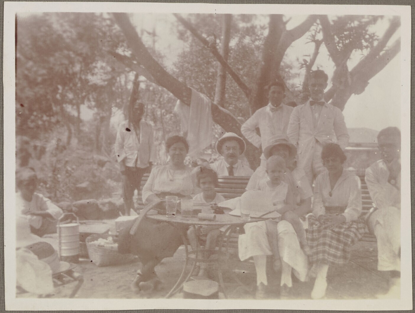 Gezelschap poseert in de tuin