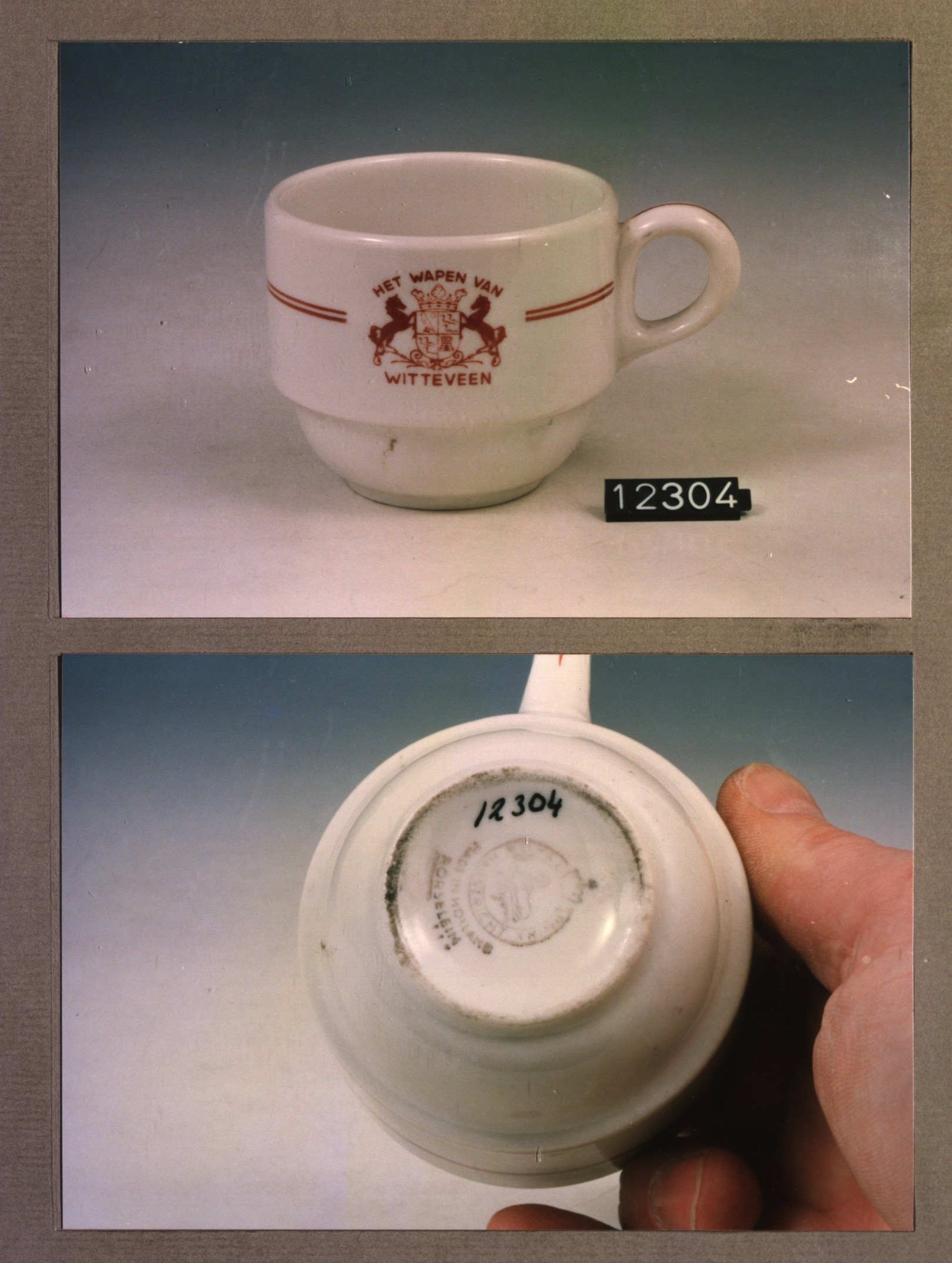 Kop met opschrift, model A met decor Witteveen wapen