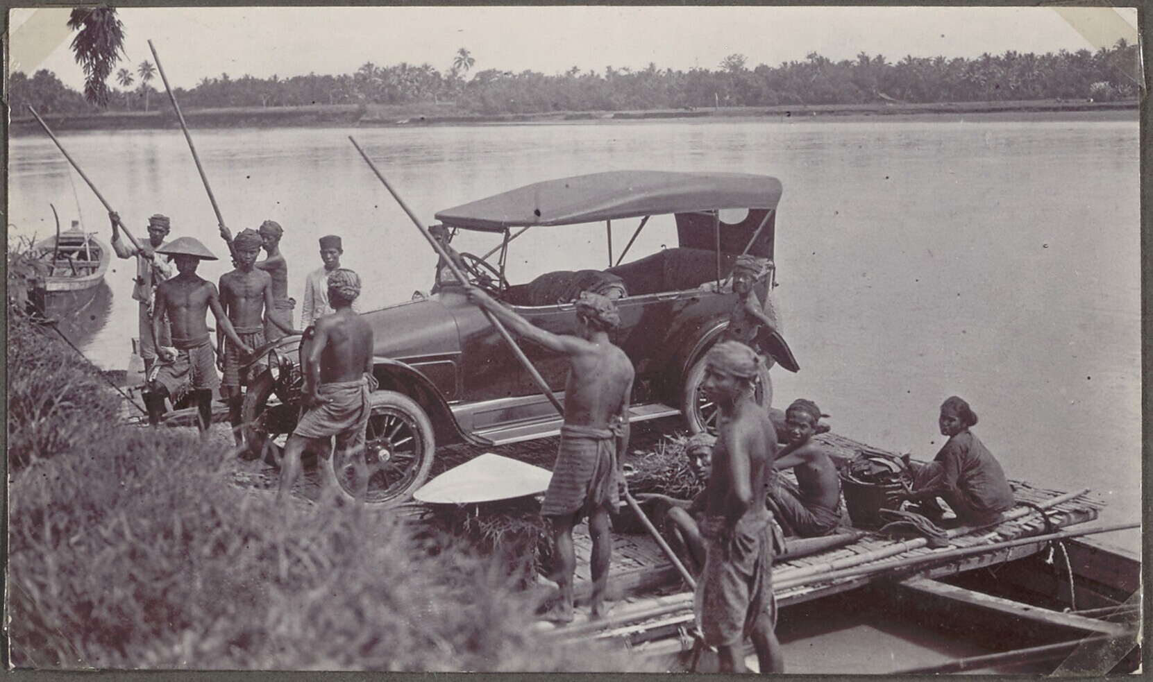 Een Mercedes Benz op een vlot