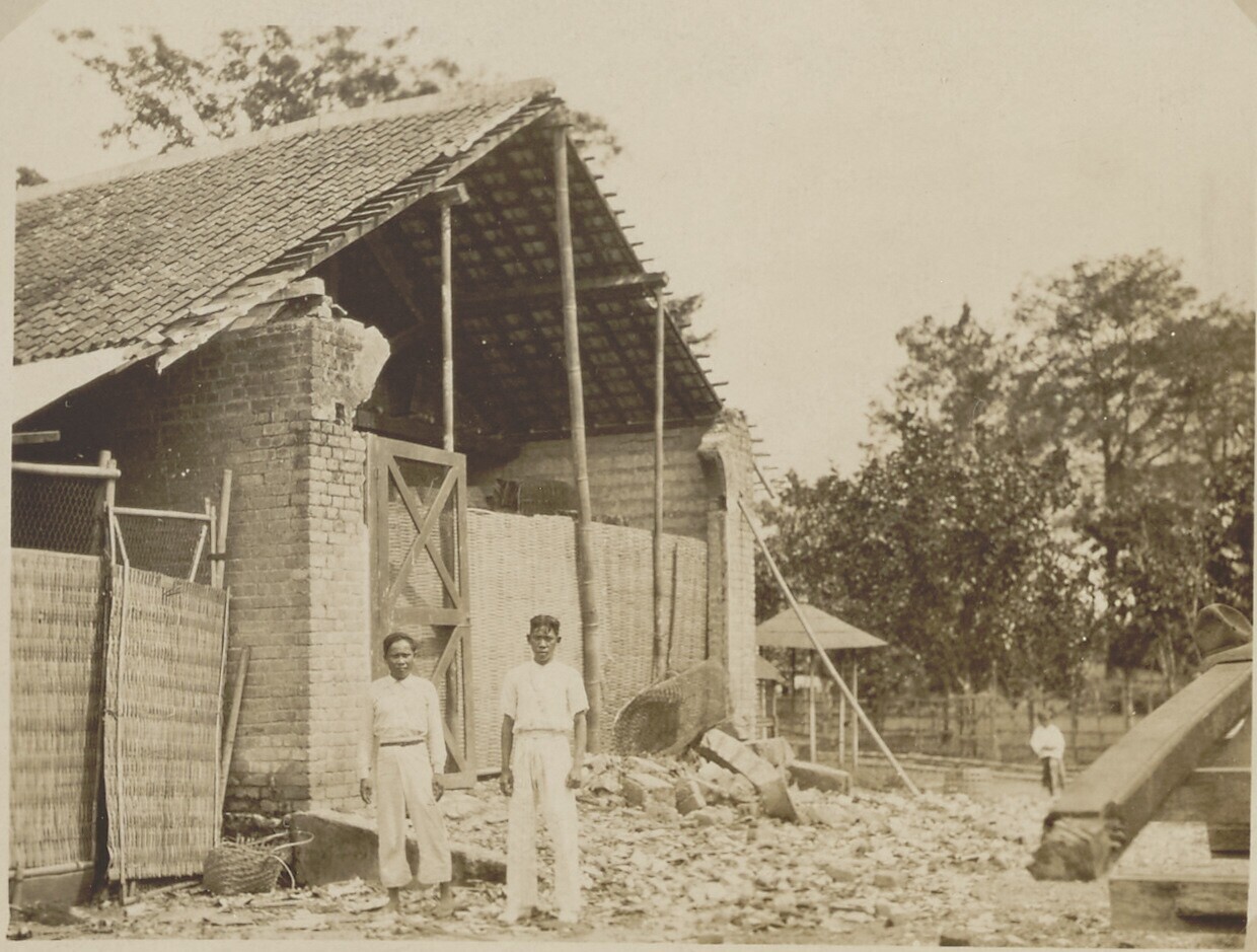 De schade na de aardbeving van november 1924 in Wono...