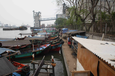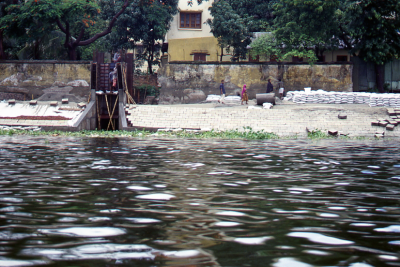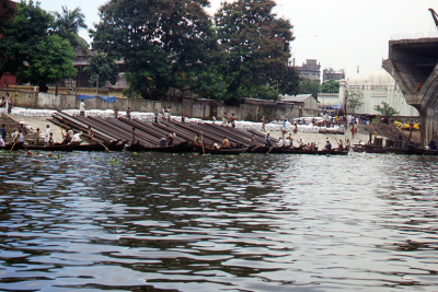 Aanlandingsplaats voor schepen in Dhaka, met een dam...