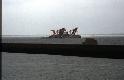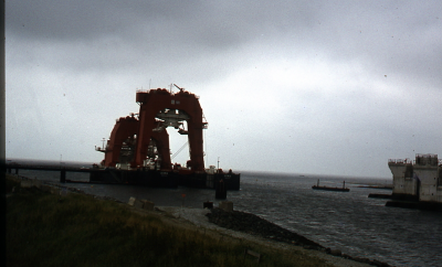Hefschip voor de pijlers van de Oosterscheldekering.