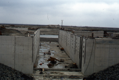 Bouwput voor een schutsluis in de Oosterscheldekering.