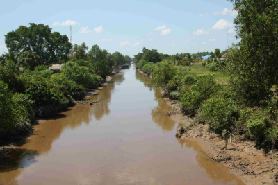Primair kanaal in Telang II, delta van de Musi, prov...