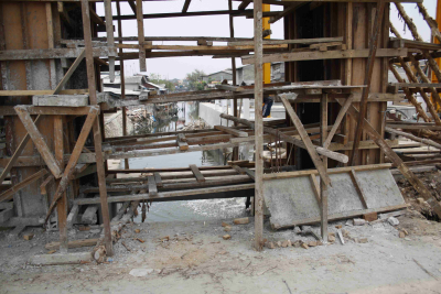 Bouwwerkzaamheden bij de monding van een rivier die ...