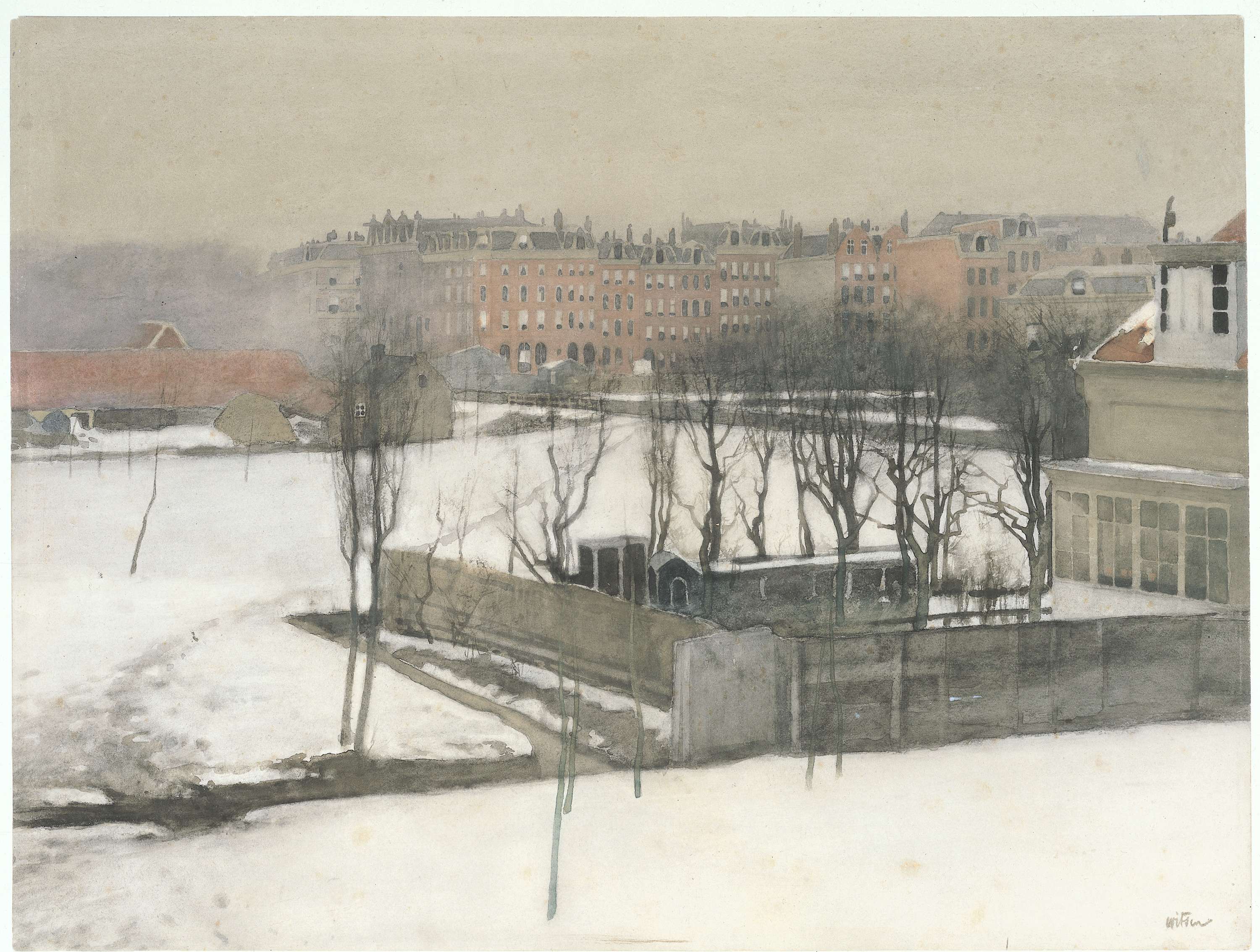 Gezicht op het Oosterpark in de sneeuw