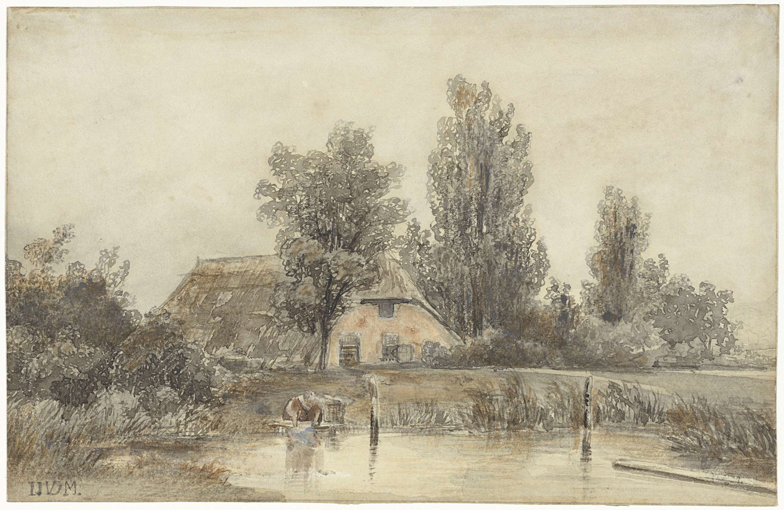 Boerderij en een wassende vrouw
